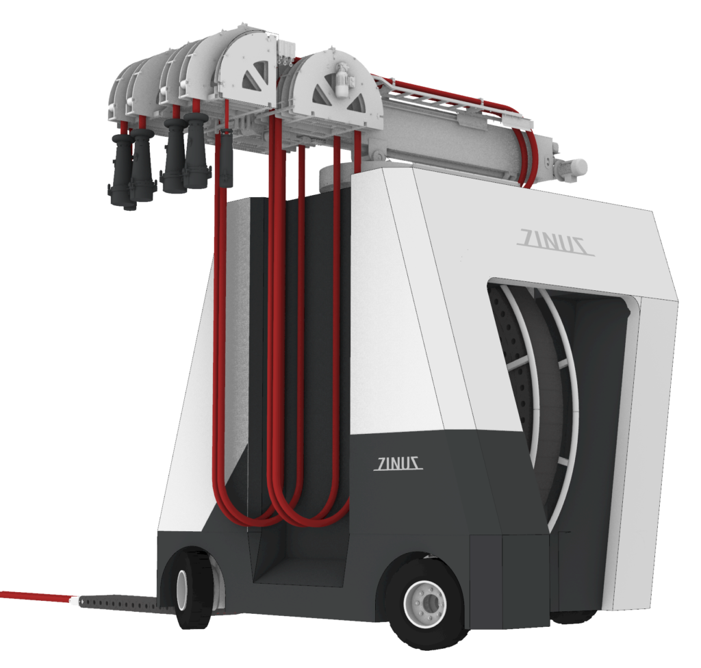 Shore Power Cruiser is designed to serve three purposes in harbours with cruise calls: To pull the cable trailer when laying cables, to improve port logistics by handling cables and connectors, and to maintain plugs and cables between the port and cruise vessel.
